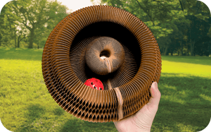 Kitty Kurlz combines modular magnetic design with reversible corrugated scratching panels. Your cat can pop modules together to build custom tracks, nap pods and scratching zones. Made from organic, non-toxic cardboard that’s gentle on paws yet durable enough for endless play and relaxation.
